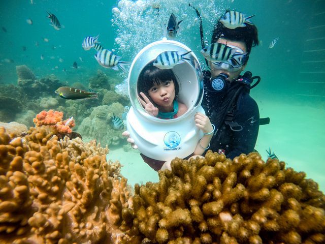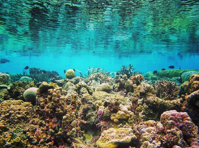 Dưới làn nước trong xanh, những rạn san hô hiện ra với đủ màu sắc trông như một vườn hoa rực rỡ, choáng ngợp. Bạn có thể ngắm san hô bằng tàu có kính trong suốt ở đáy, hay lặn biển để tận mắt chiêm ngưỡng những rạn san hô kỳ ảo, cùng các đàn cá nhiều màu sắc đang bơi lội.