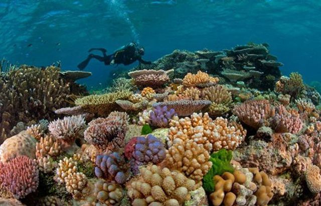 Trong làn nước biển trong vắt như pha lê phản chiếu ánh sáng mặt trời, các loài cá, san hô và thủy tảo dưới đáy biển hiện ra khoe sắc như một vườn hoa rực rỡ. San hô ở đây đủ màu sắc, hình dạng khiến bất cứ ai lần đầu chiêm ngưỡng đều không khỏi choáng ngợp.
