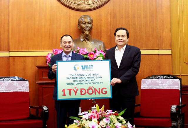 Thông qua Ủy ban Trung ương Mặt trận Tổ quốc Việt Nam (UBTU MTTQ) nhằm chung tay cùng Chính phủ trong công tác phòng chống dịch COVID-19. Tiếp nhận khoản hỗ trợ, ông Trần Thanh Mẫn, Chủ tịch Ủy ban Trung ương MTTQ Việt Nam cảm ơn Tổng công ty Cổ phần Bảo hiểm Hàng không (VNI) và các doanh nghiệp đã quan tâm, hưởng ứng lời kêu gọi toàn dân tích cực ủng hộ phòng chống dịch Covid-19. Các nguồn lực ủng hộ từ người dân và doanh nghiệp sẽ được Ủy ban Trung ương MTTQ Việt Nam điều chuyển cho ngành y tế, lực lượng vũ trang để mua sắm trang thiết bị, chi phí cho công tác phòng chống dịch. “Giữa lúc đất nước đang khó khăn, sự chung tay của các doanh nghiệp và cụ thể là Tổng công ty Bảo hiểm Hàng không (VNI) là hết sức quan trọng và ý nghĩa” – ông Trần Thanh Mẫn nhấn mạnh.