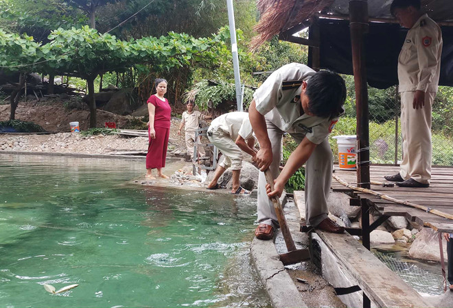 Giải thích lý do xây dựng các hạng mục trái phép, ông Dũng cho biết khu vực suối bị sạt lở nên thuê công nhân xây thêm để làm đường cho du khách đi lại.