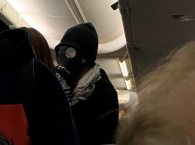Hành khách Joseph Say đăng lên mạng xã hội hình ảnh người đàn ông đeo mặt nạ trên khoang hành khách trước khi bị dẫn giải xuống. Say cho biết nhiều người lo lắng vì sự khác thường của người đàn ông, trong khi vị khách này khẳng định đeo mặt nạ “vì sự an toàn của bản thân”.