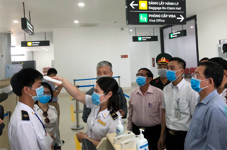 Kiểm tra y tế tại sân bay Phù Cát (Bình Định)