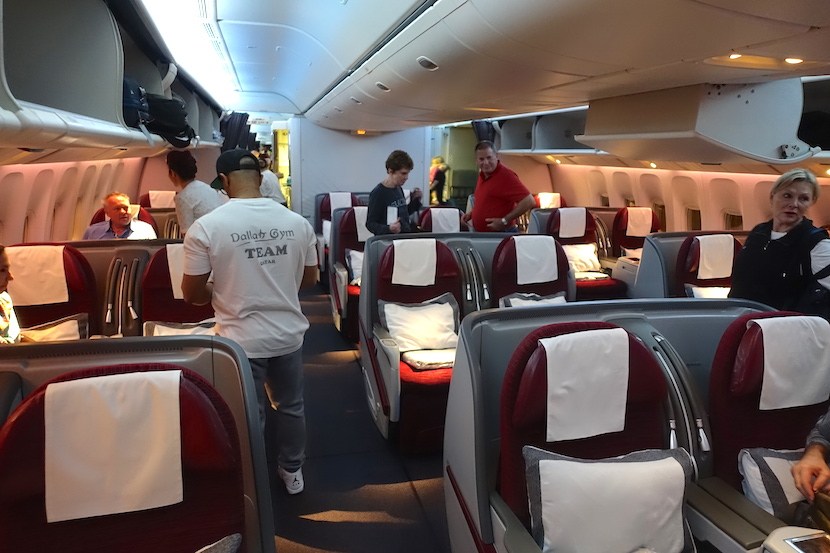 Người đàn ông trung niên cầm một chiếc túi nhựa đi khắp máy bay ở Qatar, xin tiền bố thí từ hành khách dù tiếp viên can ngăn.