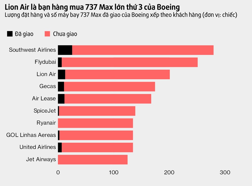 Theo ông Kirana, Boeing vẫn còn khoảng 250 máy bay chưa giao cho Lion Air. Trang web công bố đặt hàng và giao hàng của Boeing cho thấy hai bên có 188 máy bay đã đặt hàng nhưng chưa được giao.