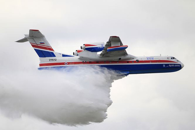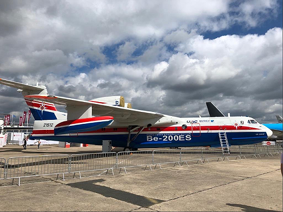 Tại Paris Air Show 2019 thủy phi cơ đổ bộ Be-200ES đã có màn trình diễn xối nước mô phỏng hoạt động cứu hỏa.