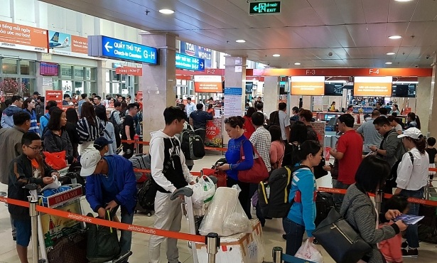 “Tôi bay từ sân bay Tân Sơn nhất về Nội Bài trước Tết Âm lịch khoảng một tuần mà khu vực ga quốc nội đã đông nghịt người xếp hàng chờ check-in. Gia đình tôi phải chia người ra các hàng khác nhau chờ làm thủ tục. Riêng khu vực làm thủ tục an ninh của hãng Vietjet năm ngoái không còn chỗ trống, tôi bị đẩy ra ngoài, phải xếp hàng trên lối đi ra ga quốc tế”.