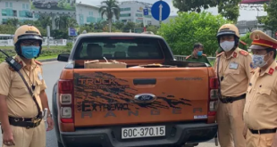 Tại chốt kiểm soát dịch Covid-19 cổng sân bay Tân Sơn Nhất hôm 7-4, lực lượng chức năng phát hiện chiếc xe bán tải chở lô hàng 10.000 khẩu trang y tế không rõ nguồn gốc. Chiếc xe bán tải chở 10.000 khẩu trang y tế không rõ nguồn gốc bị bắt hôm 7-4 (Ảnh: Phòng CSGT Đường bộ – …