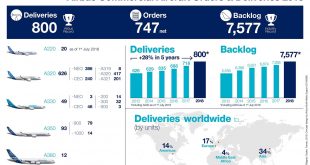 Tập đoàn Airbus đã bàn giao 800 máy bay thương mại cho 93 khách hàng trong năm 2018, tăng 11% so với kỷ lục 718 chiếc trong năm 2017, giúp hãng đạt mục tiêu cả năm và xác lập nên kỷ lục mới. Đây là năm thứ 16 liên tiếp, Airbus đã tăng số lượng máy bay thương mại được …