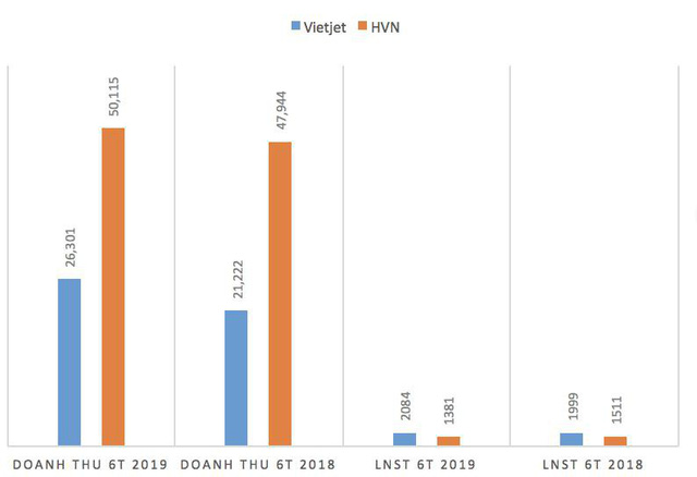 Thông tin truyền thông ghi nhận những số liệu cho thấy thị trường hành khách hàng không 6 tháng đầu năm 2019 tiếp tục tăng trưởng đạt 9,4% so cùng kỳ 2018. Sự xuất hiện của hãng hàng không mới cũng gia tăng cạnh tranh trong ngành. Trong bối cảnh ấy, ROE 6 tháng của Vietjet ở mức 38,47% trong khi Vietnam Airlines là 9,7% cho thấy hiệu quả sử dụng đồng vốn của hãng hàng không thế hệ mới tiếp tục ghi nhận liên tục qua các thời kỳ.