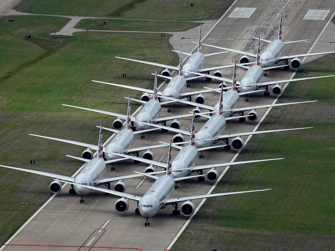 Hàng nghìn chiếc máy bay nằm xếp hàng chờ một ngày quay trở lại bầu trời. Cảnh tượng đến khó tin ở những sân bay bận rộn nhất thế giới.