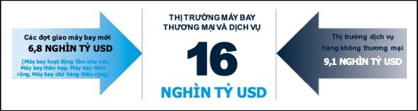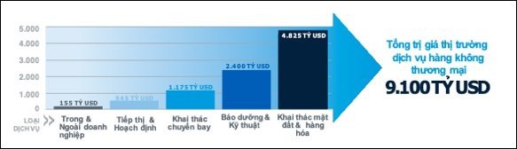 Một phân khúc lớn khác là thị trường khai thác chuyến bay trị giá 1,1 nghìn tỷ USD, bao gồm các dịch vụ liên quan đến khoang lái, dịch vụ cabin, huấn luyện phi hành đoàn, khai thác và quản lý máy bay.