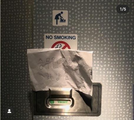 Sự cố xảy ra trên chuyến bay của KLM từ Amsterdam, Hà Lan đến Incheon, Hàn Quốc hôm thứ Hai (10/2). Thành viên phi hành đoàn viết ghi chú bằng tiếng Hàn trên cửa phòng vệ sinh với nội dung: “Chỉ dành cho các thành viên phi hành đoàn”.