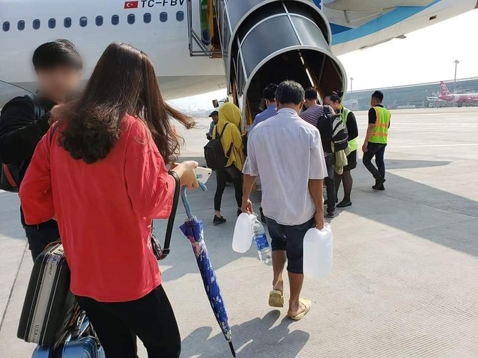 Trên mạng xã hội Facebook những ngày gần đây xuất hiện bức ảnh về một hành khách mang theo hai can nhựa màu trắng và một chai bên trong có khả năng đang đựng chất lỏng đang lên một máy bay (boarding). Một số ý kiến cho rằng việc hành khách này mang một số lượng lớn chất lỏng như vậy lên máy bay là vi phạm qui định về an toàn hàng không.