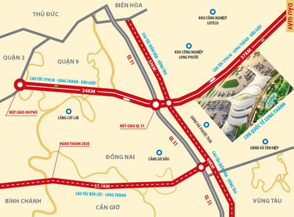 Được biết, khu vực này là nơi tập trung các đầu mối lớn về giao thông của quốc gia như: Cảng hàng không quốc tế Long Thành, các đường cao tốc: TP.HCM – Long Thành – Dầu Giây, Biên Hòa – Vũng Tàu, Bến Lức – Nhơn Trạch – Long Thành, đường sắt TP.HCM – Biên Hòa – Long Thành – Vũng Tàu, quốc lộ 51… thì tương lai Long Thành sẽ còn phát triển xa hơn nữa.