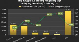 Trong một tháng gần đây các hãng hàng không Việt Nam gồm Vietnam Airlines, Vietjet Air, Bamboo Airways, Jetstar Pacific và VASCO đã chậm và hủy tổng cộng 3.057 chuyến bay. Theo số liệu từ Cục Hàng không, trong tháng 11/2019 (tính từ 19/10 đến 18/11) các hãng bay Việt Nam khai thác tổng cộng 28.322 chuyến bay với tỉ …